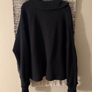 Free People Black V-Neck Ribbed Sweater