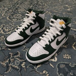 NWOT Nike Dunk High Retro Men's Green and White High-Top Sneakers