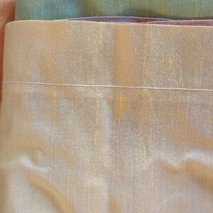 Beautiful color block silk curtains in like new condition. Handmade with lightweight flowy silk. Set of two, measure 84 x 45 inches each. Awesome colors would brighten up any room! Check out my other listings to bundle and save!:)