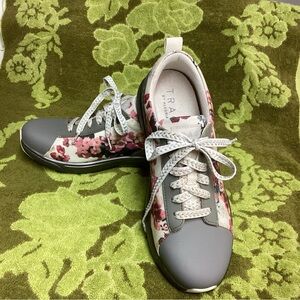 Step into comfort and style with Women's Floral Gray Sneakers. Featuring a beautiful floral design, these shoes are perfect work or just day to day. I wear an 8.5 and found them to be a nice fit. In near new excellent condition
