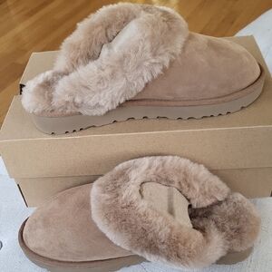 UGG Women's Classic Slippers II in Tan with Plush Fur