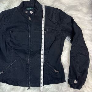 LRL Lauren Jeans Co. Moto Denim Jacket~ Women’s~Black Zip Polo~Size Large