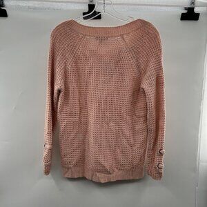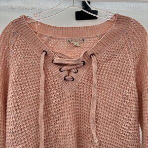 It's Our Time Women's Knit Pullover Sweater Lace Up Neck Long Sleeve Pink Medium