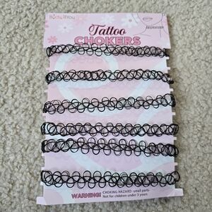 6 Black Tattoo Choker Necklace Set
