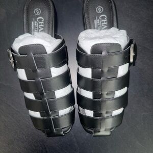 NIB Chaps Black Woven Strappy Leather Sandals Size 6
