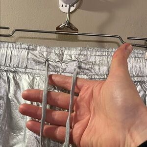 Sleek metallic joggers. Elastic waistband. Ideal for a modern look. New without tags never worn.