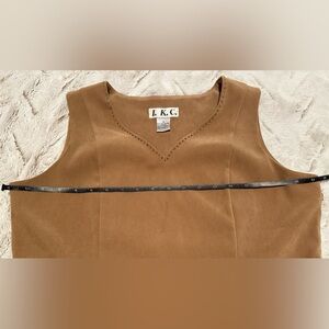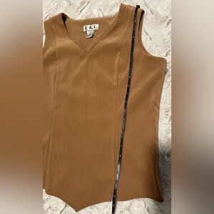 Stylish tan sleeveless top by I.K.C. Features a chic V-neck design.