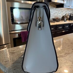 This elegant white quilted handbag is perfect for any occasion. Its sleek design and versatile color make it a must-have accessory. Brand new. But exact Brand/Maker is unknown. Just over 11 1/2” across bottom. Height of bag is 10”. Just over 11” across middle of bag. Comes with extra long shoulder chain, as well.