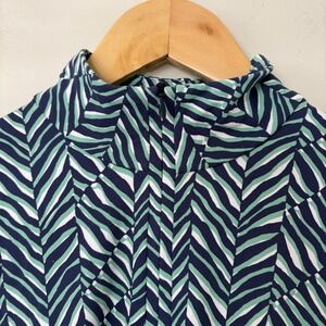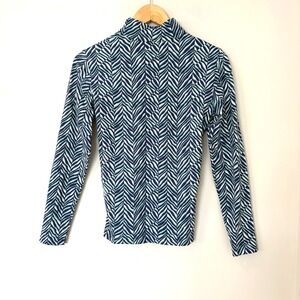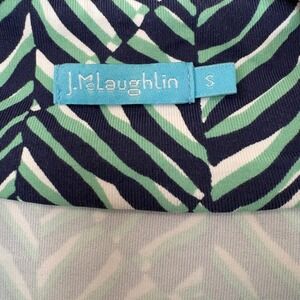 J McLaughlin women's quarter zip pullover athletic top in size small. This long sleeve top features a striking abstract print in navy green and white. Perfect for golf, tennis, or casual wear, this versatile piece offers both style and comfort. Ideal for active days outdoors or a relaxed weekend.