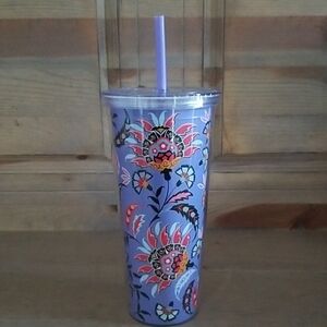 Anthropologie Block Printed Monogram Mug with Letter “M”. Made from decayed stoneware and features a floral paisley pattern. The mug has a speckled finish and a thumb rest on the handle for easy gripping. It is dishwasher and microwave safe and holds approximately 16.25 ounces of liquid.