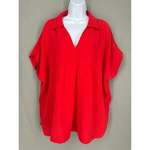Umgee Top Womens Medium Red Flowy Oversized V Neck Comfortable Capsule