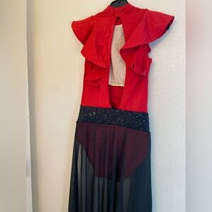 Weissman Elite Dance costume red black maxi mesh dress Alejandro D12165 SA adult