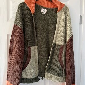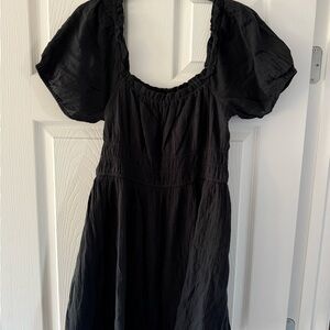 Stylish black hoodie. Features a half-zip front. Comfortable and versatile.