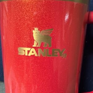 Bold red Stanley mug with a sturdy handle. Perfect for keeping drinks hot or cold.
