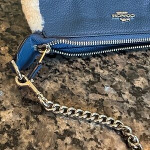 Coach Blue leather and sherling Wristlet with Chain