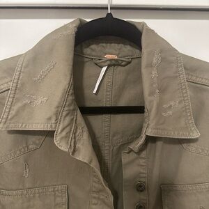Chic khaki button-up jacket. Features front pockets. Ideal for everyday style.