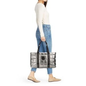 Keywords: Pajar, tote, quilted, metallic, gunmetal, large, travel, gym, everyday, fashion, winter, chic, designer