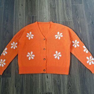 Sweater Cardigan Oversized Floral Design Grandmacore Girly.