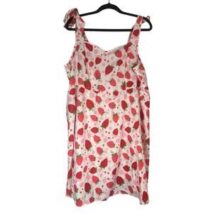 Strawberry Print Flare Sundress 4X Coquette Retro Kidcore Twee Pink White Bows