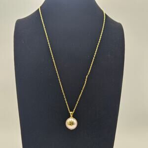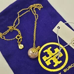 NEW Tory Burch Pink Pearl T Logo Necklace Gold Chain Adjustable NWT Gift