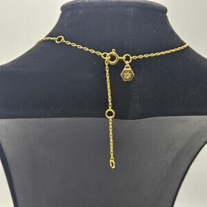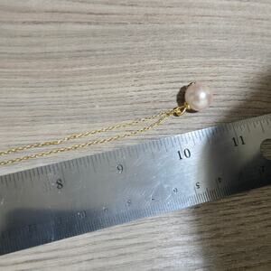 This necklace features a delicate pink pearl T logo pendant on a beautiful gold chain. The chain is adjustable, allowing you to customize the length to suit your preference.