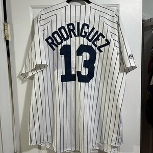 Alex Rodriguez Jersey Men Large White Majestic New York Yankees Pinstripes #13. Condition is Used. Size faded off tag first like a Large/ XL