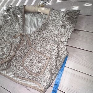 Charming and unique, this Baevely cropped vest is perfect for layering. It features a delicate neutral floral print, flutter sleeves, and two front patch pockets. Designed with a tie-front closure and a soft quilted texture, this piece adds cozy cottagecore vibes with a modern cropped silhouette.
