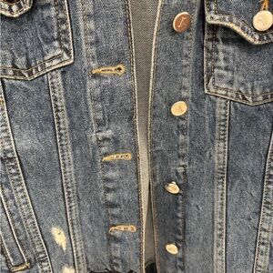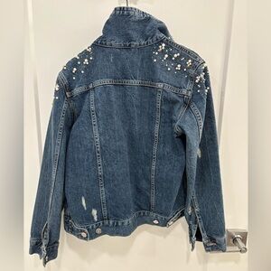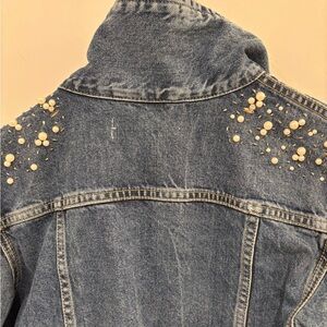 Anthropologie Pilcro Embellished Distressed Denim Trucker Jacket Size Small