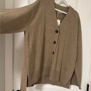Elegant wool jacquard cardigan with button closure in Oatmeal Melange.