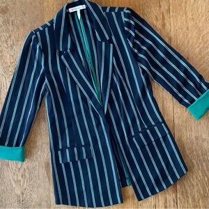 Stylish Liz Claiborne blazer in textured tan. Features classic lapels and front pockets. Ideal for versatile wear.