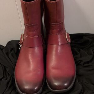 MBT Unique, beautiful, Mcgee burnished dark boots in red brown.