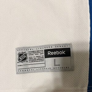 Reebok hockey jersey in burgundy and white. Features large front logo and number 9 on sleeves.
