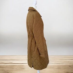 Talbots Tan Quilted Snap Button Cinch Waist Midi-Length Coat Size Large Petite