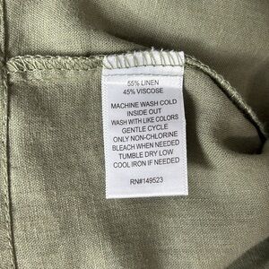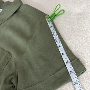 Alex & Jordan Linen Blend Olive Green Cropped Top can also be worn as a light jacket. Features front button closure and 2 front patch pockets. Size Large