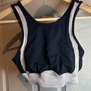ALO Yoga Cream and Black Ribbed Detail
