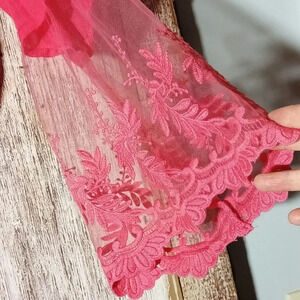 NEW Boho romantic cottage prairie lace embroidered gauzy crop pink large