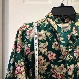 Sellecca Women's Emerald Green Floral Button Down Sleep Shirt Pajama Top Size S