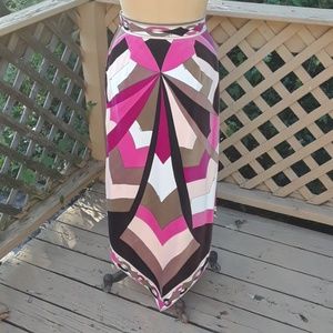 Vibrant colors, pinks & browns; signature Pucci print, fully lined in pink, zipper on left side