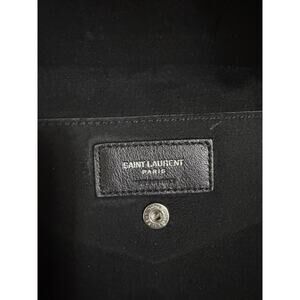 Elevate your style with this stunning Yves Saint Laurent Teddy Bucket Bag. Crafted from high-quality leather, this bag features a drawstring closure and silver hardware. The large size and black suede lining make it perfect for any occasion. The strap accent adds a touch of elegance to the design.