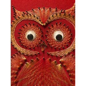 Handmade String Art Owl Wall Decor Red Background Googly Eyes