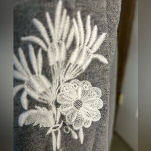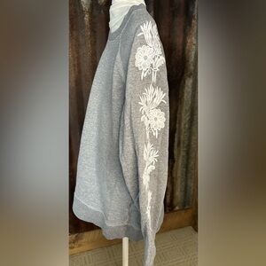 JCrew Gray Embroidered Sleeve Sweatshirt