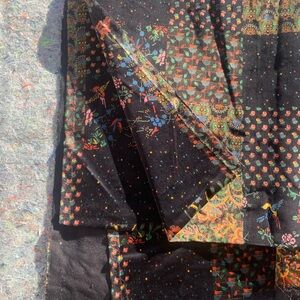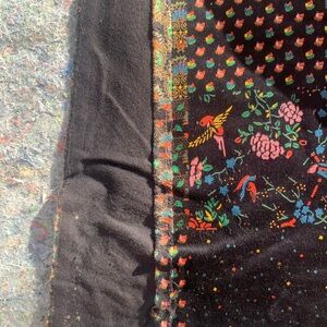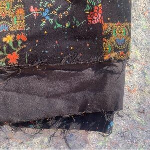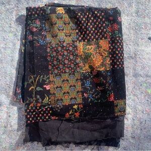 Vintage 70s black & Multicolor flora faux patchwork cotton Beckett fabric sewing