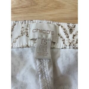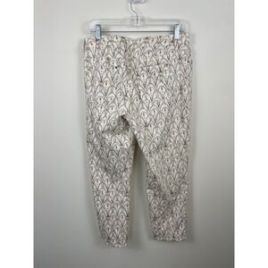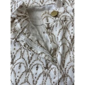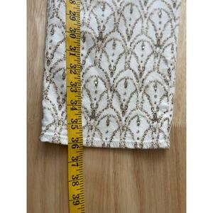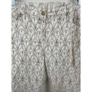 Chicos Pants Womens Size 1.5 (10) White Gold Art Deco Print Embellished Cropped