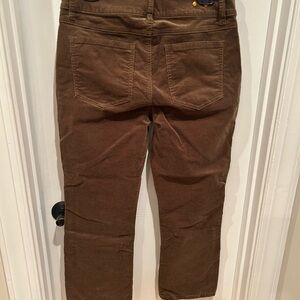 Stylish brown cords by CAbi. Features gold button accents. Perfect for casual wear.