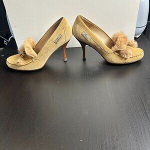 StUnNiNg Fur Lined DELMAN Suede Loafer Style Heels Tan Brown Size 7.5