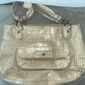 Coach Vintage Cream Beige Kristin Crocodile-Embossed Shoulder Satchel Bag