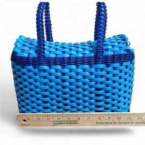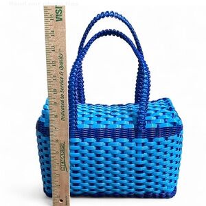 HANDMADE Artesanal Blue Woven Ratan Tote Bag With A Boho Vibe. M ,NWOT