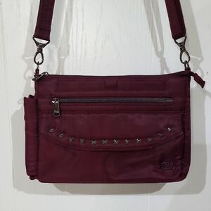 Mauve blouse with navy floral pattern. EUC. Sz. M.