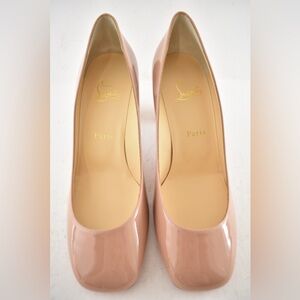 Christian Louboutin Cadrilla 70 Nude Blush Patent Leather Block Heel Pump 37.5