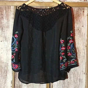 Valerie Stevens boho embroidered lace crochet sheer lightweight size small